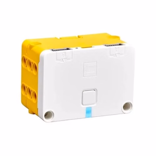 The LEGO Education SPIKE Essential Small Hub is the core control unit for SPIKE Essential robotics and STEAM builds, designed to bring coding and interactive performance to life. It features two input/output ports for attaching LEGO Technic motors and sensors, Bluetooth connectivity for wireless control, and an integrated 6‑axis gyro sensor that detects motion and orientation for dynamic programming experiences. The hub also includes a rechargeable battery with micro USB charging and a simple button interface with LED status indicators, making it easy to use for students and educators alike. Its versatile build geometry and compatibility with the SPIKE app enable engaging robotics lessons and creative engineering projects.