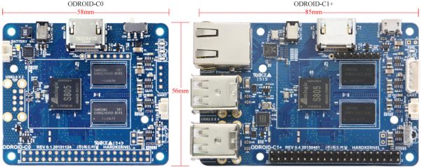 The ODROID-C0 is a low cost and light weight variant to the original ODROID-C1+ model. The PCB size is reduced about 24% and the weight is reduced to 16g from 40g.