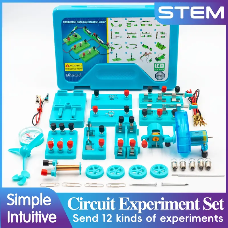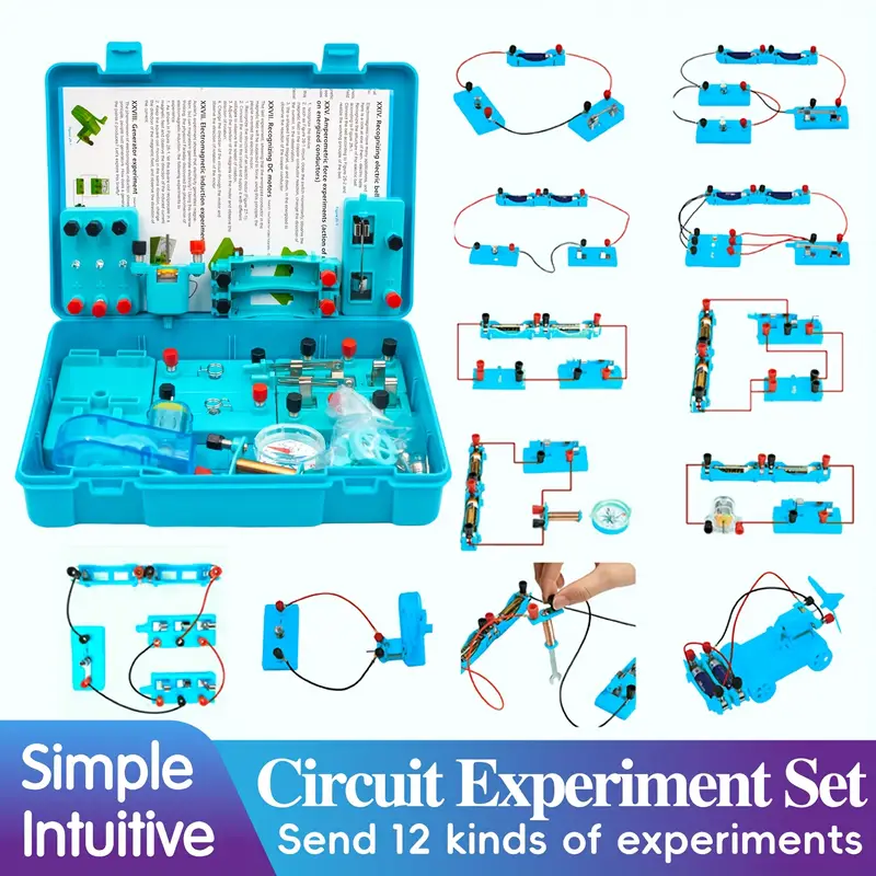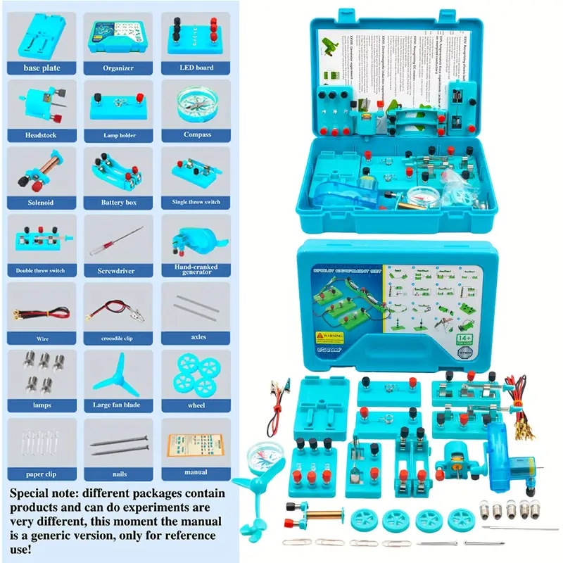 STEM Physics Experiment Kit Set for Teachers – Classroom Demonstration Set with LED Board, Motor, Fan, Compass – Educational Science Lab Supplies for School and Home – Includes English Guide – Blue