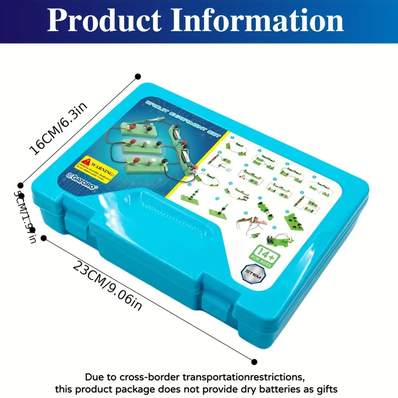 The equipment for the electrophysics laboratory is made of durable ABS plastic. It is packed in a storage box measuring 23 x 16 x 3 cm and weighs approximately 0.50 kg. Please note that 2 AA batteries are required for its operation (batteries are not provided). Live English manual for daily use.