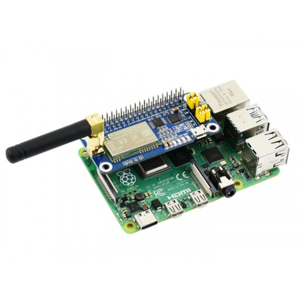 This is a Raspberry Pi LoRa HAT based on SX1262, covers 915MHz frequency band. It allows data transmission up to 5km through serial port.