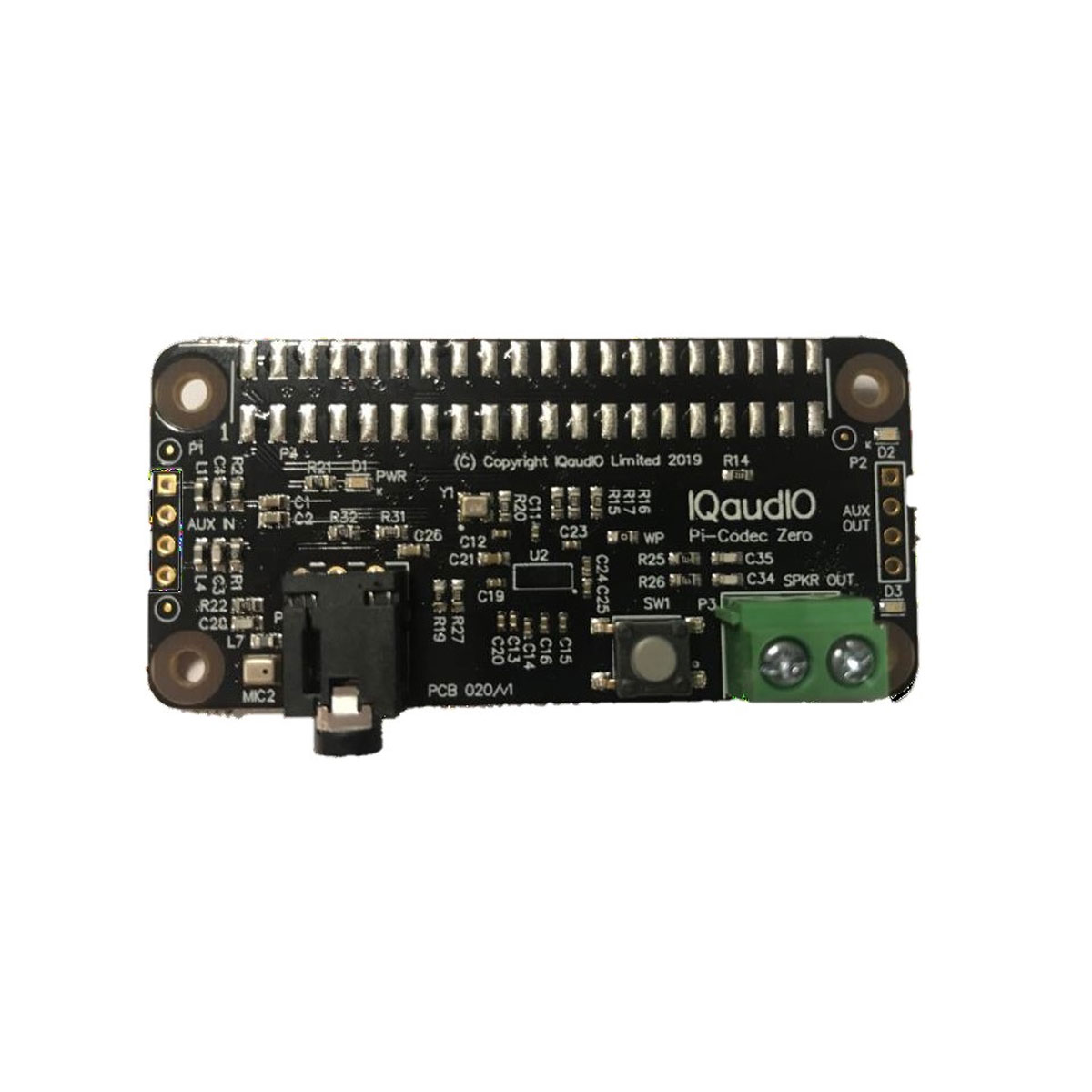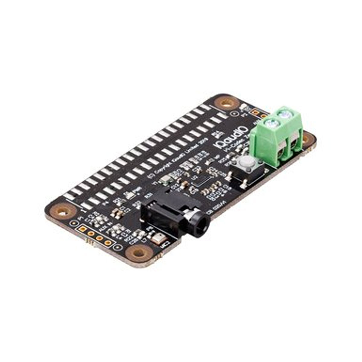 IQaudio Codec Zero is a Raspberry Pi Zero-sized audio I/O HAT. It delivers bi-directional digital audio signals (I2S) between Raspberry Pi Zero and its onboard Dialog Semiconductor DA7212 codec. Codec Zero supports a range of input and output devices, from the built-in MEMS microphone to external mono electret microphones and 1.2W, 8Ω mono speakers.
